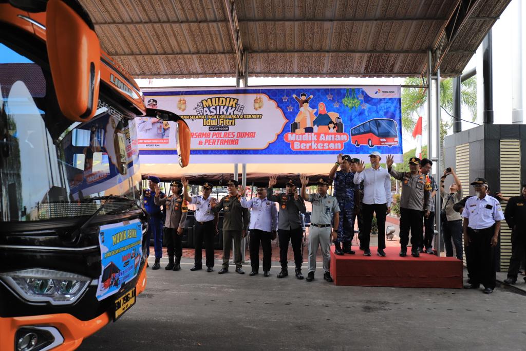 Kegiatan mudik gratis ini dilepas oleh Wali Kota Dumai H. Paisal bersama Kapolres Dumai AKBP Nurhadi dan GM KPI RU II Dumai.
