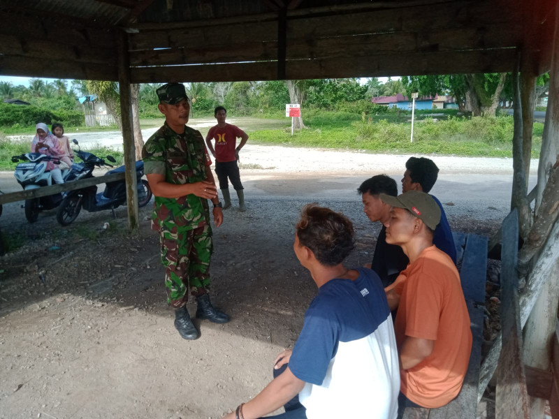 BENGKALIS (MR) - Serda K.Sinaga Babinsa Koramil 06/Merbau Melaksanakan Komsos di Kampung pancasila, dengan masyarakat Kelurahan Teluk Belitung Kecamatan Merbau Kabupaten Kepulauan Meranti.