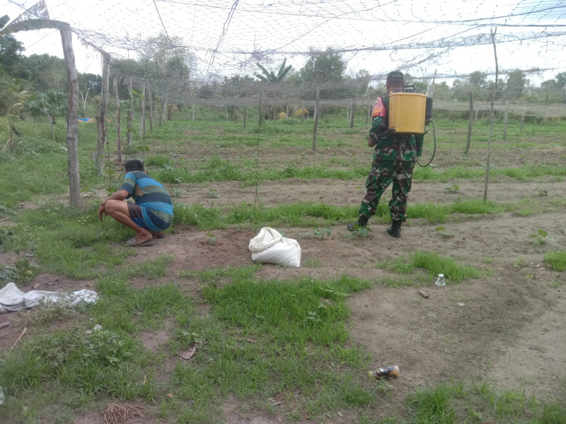 DUMAI (MR) - Babinsa Kelurahan Pangkalan Sesai, Kecamatan Dumai Barat, Serda Agustinus.H., melaksanakan kegiatan sosialisasi dan pendampingan karya nyata tanaman Timun di kebun milik Suroso, jalan tani pada hari Rabu, 26 April 2023.