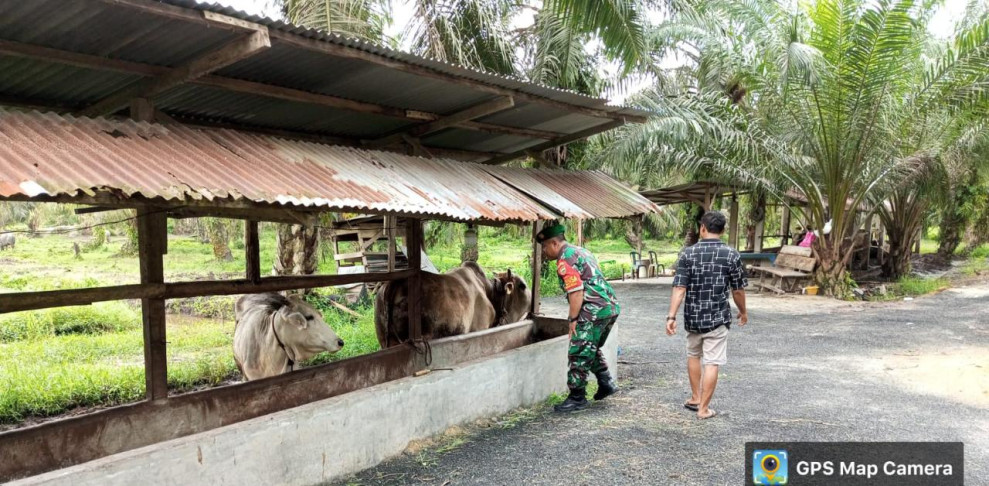 DUMAI (MR) - Dalam rangka menjaga keamanan dan kesehatan hewan ternak sapi di wilayah Kelurahan Bagan Besar Timur, Kecamatan Bukit Kapur, Babinsa Serma Zul Efendi melaksanakan pengecekan terhadap virus PMK (Penyakit Mulut dan Kuku) pada hewan ternak sapi milik Anto, yang terletak di Jalan Tengku Amad, RT 04, (27/4).