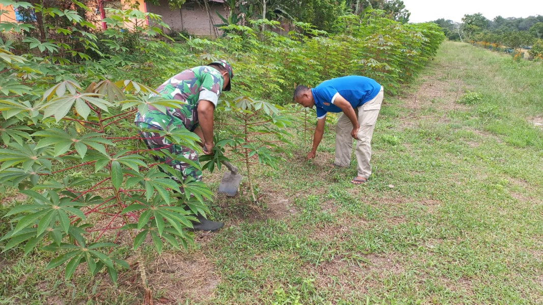 Kegiatan karya nyata pendampingan ketahanan pangan tanaman Ubi Kayu dan Ubi Rambat di lahan Frengki di Jalan Pawang Sidik RT 05 Kelurahan Bukit Nenas oleh Babinsa Kelurahan Bukit Nenas Ramil 02/BK Serda Roni Sandra berjalan sukses.