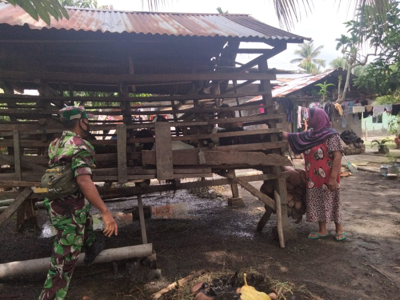 DUMAI (MR) - Koramil-01/Dumai melalui Babinsa Kelurahan Bukit STDI - Kecamatan Dumai Barat, Sertu Sugianto, melaksanakan sosialisasi pencegahan Penyakit Mulut dan Kuku (PMK) kepada hewan/ternak milik Atun di RT 5.