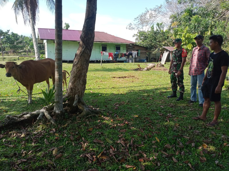"Seperti hari ini, kami datangi ternak milik warga, jadi kami ingin pastikan ada tidaknya gejala maupun ciri-ciri hewan ternak yang terinfeksi wabah PMK,"Ujar Serda Engki Tarnando.