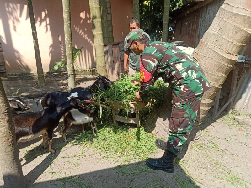 Dalam kegiatan ini, Sertu Boby Rahman memberikan penjelasan dan mengingatkan warga agar menjaga kebersihan kandang dan kesehatan ternak mereka.