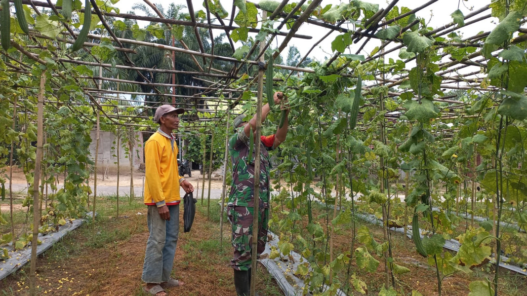 Babinsa Ramil 02 BK Berikan Edukasi Terkait Penanaman Gambas