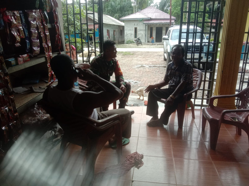 DUMAI (MR) - Jaga keamanan, Sertu Afnal Babinsa Koramil 03 SS melaksanakan kegiatan Komunikasi Sosial (Komsos) bersama dengan beberapa tokoh masyarakat, (18/7).