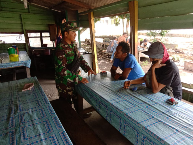DUMAI (MR) - Babinsa Sertu Jainal Arifin dari Koramil 03 SS kelurahan Basilan baru melaksanakan kegiatan Komunikasi Sosial (Komsos) di wilayah binaannya, dengan fokus pembicaraan mengenai keamanan dan ketertiban wilayah, (28/7).