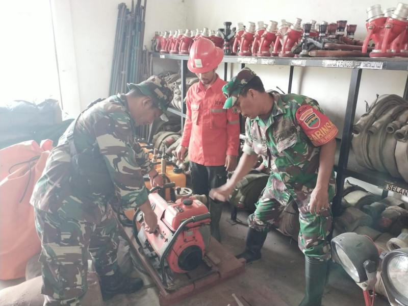 Cuaca Ekstrim, Babinsa Dari Koramil 03 SS Cek Kondisi Peralatan Pemadam Kebakaran