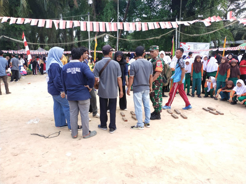 DUMAI (MR) - Babinsa Kelurahan Tanjung Penyembal, Serka Khorianto, menghadiri acara perlombaan rakyat dalam rangka memeriahkan HUT RI ke-78 di RT 08, Kelurahan Tanjung Penyembal, (26/8).