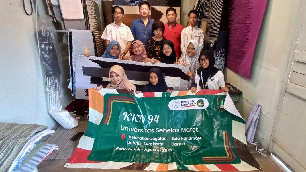 SOLO (MR) - Mahasiswa Kuliah Kerja Nyata Kelompok 94 Universitas Sebelas Maret berkolaborasi dengan Usaha Mikro Kecil dan Menengah Solo Handmade Carpet menciptakan inovasi desain yang menarik dengan esensial tinggi. Solo Handmade Carpet merupakan UMKM yang berlokasi di Jagalan Surakarta, dengan fokus pada sektor pengembangan produk karpet handmade dan memperkenalkan ke pasar mancanegara melalui pameran-pameran bertaraf internasional.