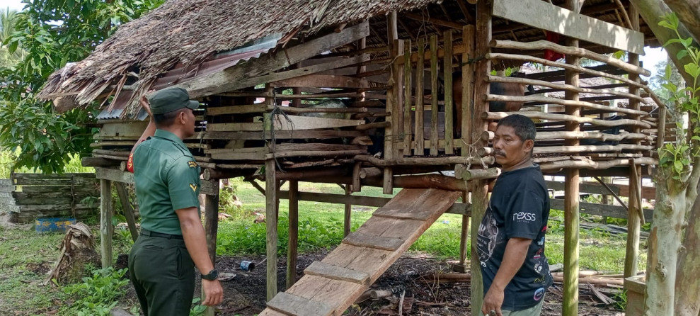 BENGKALIS (MR) - Serda Syahrul Ismail, Babinsa dari Koramil 06/Merbau di bawah naungan Kodim 0303/Bengkalis, aktif dalam upaya pencegahan Penyakit Mulut dan Kuku (PMK) dengan melakukan pengecekan hewan ternak di Desa Batang Meranti, Kecamatan Pulau Merbau, Kabupaten Kepulauan Meranti.