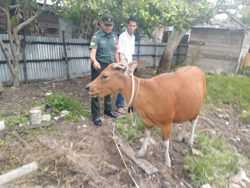 BENGKALIS (MR) - Dalam upaya pencegahan penyebaran Penyakit Mulut dan Kuku (PMK), Babinsa Serka Eri Efrianto dari Koramil 06/Merbau Kodim 0303/Bengkalis melakukan pengecekan PMK pada hewan di Kelurahan Teluk Belitung, Kecamatan Merbau, Kabupaten Kepulauan Meranti.