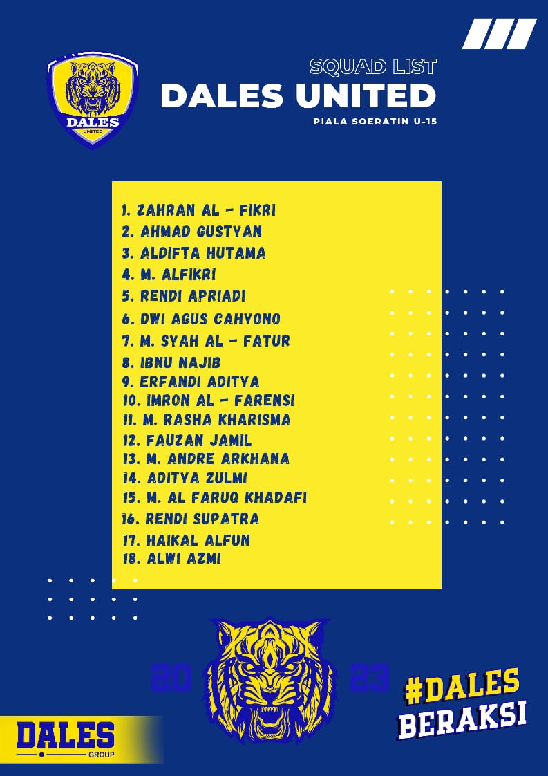 Minggu, 3 September 2023 dilakukan lagi pengurangan pemain sehingga diambil 18 pemain yang dipersiapkan untuk membela Dales United menghadapi Soeratin Cup U-15 Zona Riau.
