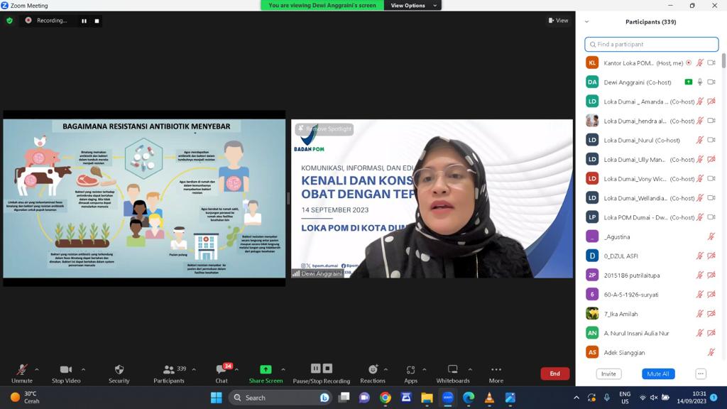 “Dampaknya dapat berakibat serius pada kesehatan manusia, hewan, dan lingkungan. Melalui kegiatan ini, kami berkomitmen untuk terus meningkatkan pemahaman masyarakat tentang bahaya resistensi antimikroba” ujar Ully Mandasari, Kamis (14/09) secara daring.