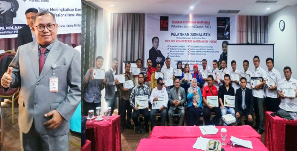 Dalam pelatihan yang diikuti 30 peserta para jurnalis dan Ketua Organisasi Pers se-Provinsi Riau itu, selain Wahyudi menampilkan dua pembicara: Direktur Hukum PJC, Asmanidar, S.H. dan Direktur Pendidikan PJC, Abdul Kadir, S.Pd.,M.Pd.,M.IKom.