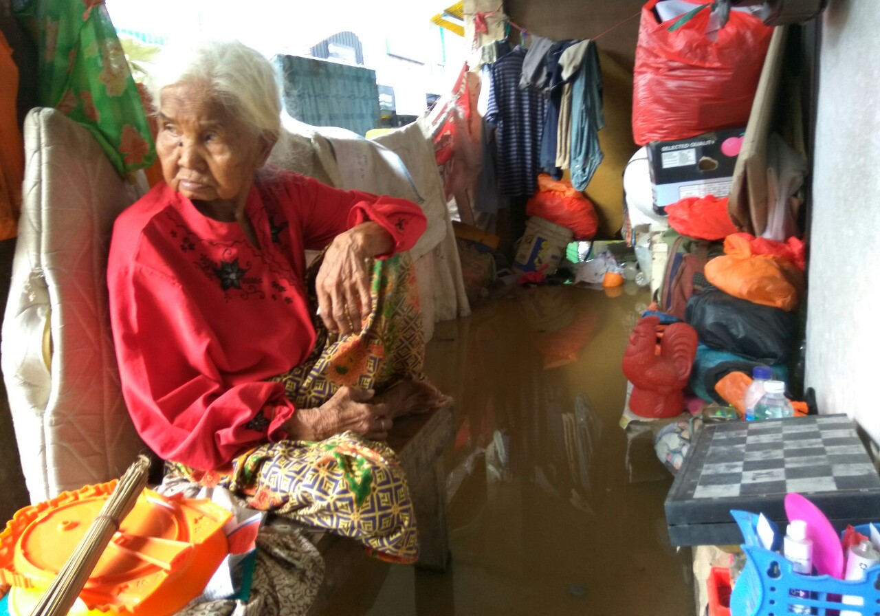 Ia seorang diri, ia bersama seorang putranya, Udin (54). "Kalau sudah surut barulah bisa istirahat. Mama saya sudah 3 bulan ikut saya dan saya sendiri, sebenarnya hidup seperti ini sudah 5 tahun tapi pindah-pindah lokasi," kata Udin, Senin (27/2/2017).