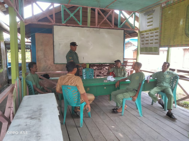 BENGKALIS (MR) - Serda Ansari, Babinsa dari Koramil 06/Merbau Kodim 0303/Bengkalis, melaksanakan kegiatan Komunikasi Sosial (Komsos) di Kampung Pancasila, Kelurahan Teluk Belitung, Kecamatan Merbau. Komsos ini dilakukan bersama dengan unsur Linmas (Perlindungan Masyarakat) setempat.