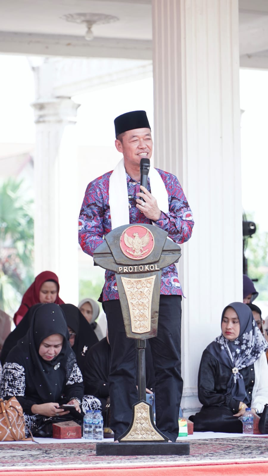 Dalam sambutannya, Bupati Rohil menyampaikan ucapan selamat datang kepada ustad yang telah berkenan hadir untuk memberikan tausiyah dan ucapan terimakasih kepada seluruh pegawai dan masyarakat yang telah hadir.