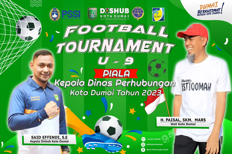 Sebagai bentuk dukungan dan bukti kepedulian, Kadishub Dumai bekerja sama dengan SSB Persekat Dumai menggelar Turnamen Sepakbola U-9 yang akan di gelar 20 Oktober 2023 di Lapangan sepakbola Jalan Terikat Dumai.