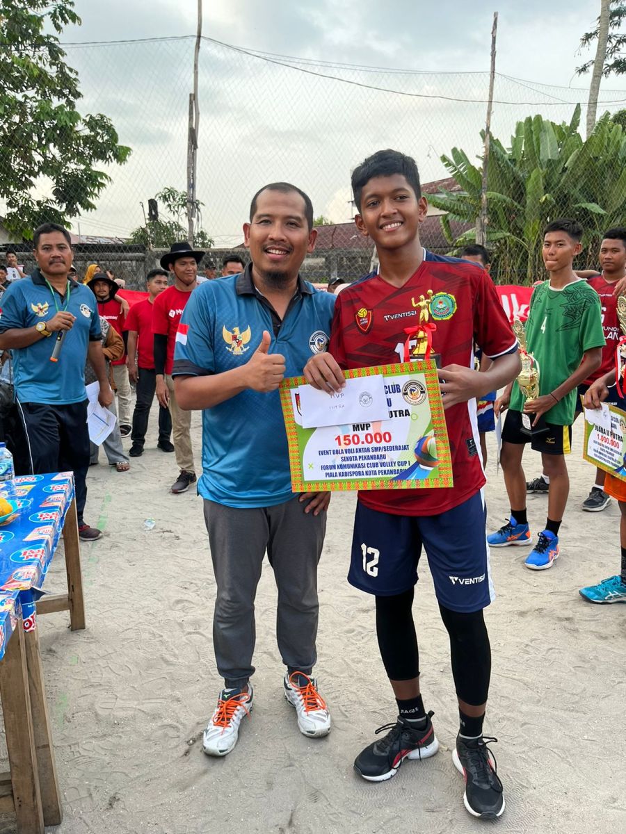 PEKANBARU (MR) - Turnamen bola voli Cup I antar SMP/ Sederajat yang ditaja Forum Komunikasi Club Volley Pekanbaru (FKCVP) resmi berakhir, Ahad (5/11/2023).