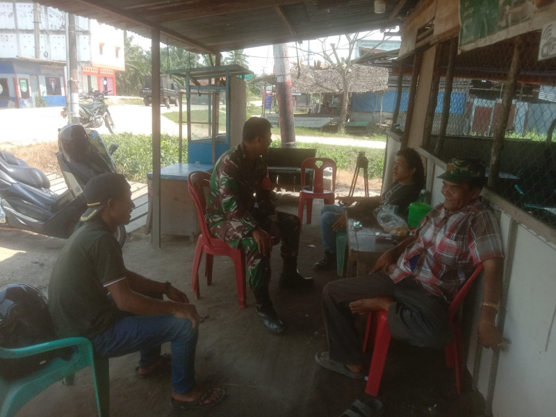 DUMAI (MR) - Jaga keamanan, Sertu Afnal Babinsa Koramil 03 SS melaksanakan kegiatan Komunikasi Sosial (Komsos) bersama dengan beberapa tokoh masyarakat, (7/11).