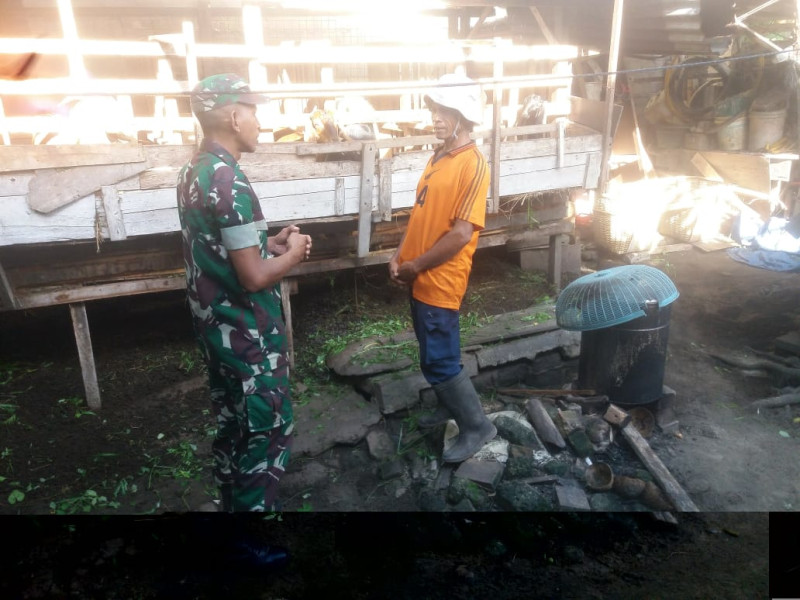 DUMAI (MR) - Babinsa Koramil 01/Dumai, Kodim 0320/Dumai, Sertu Nono.S melaksanakan sosialisasi pencegahan Penyakit Mulut dan Kuku (PMK) di RT 06, Kelurahan Bukit Batrem, Kecamatan Dumai Timur, Kota Dumai, Rabu (29/11/2023).