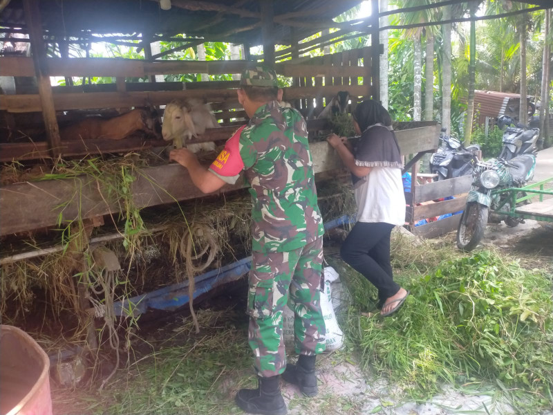 DUMAI (MR) - Babinsa Koramil 01/Dumai, Kodim 0320/Dumai, Sertu Arjuna Endar, melaksanakan sosialisasi pencegahan penyakit mulut dan kuku (PMK) di RT 04 milik Aminah, Minggu (17/12).