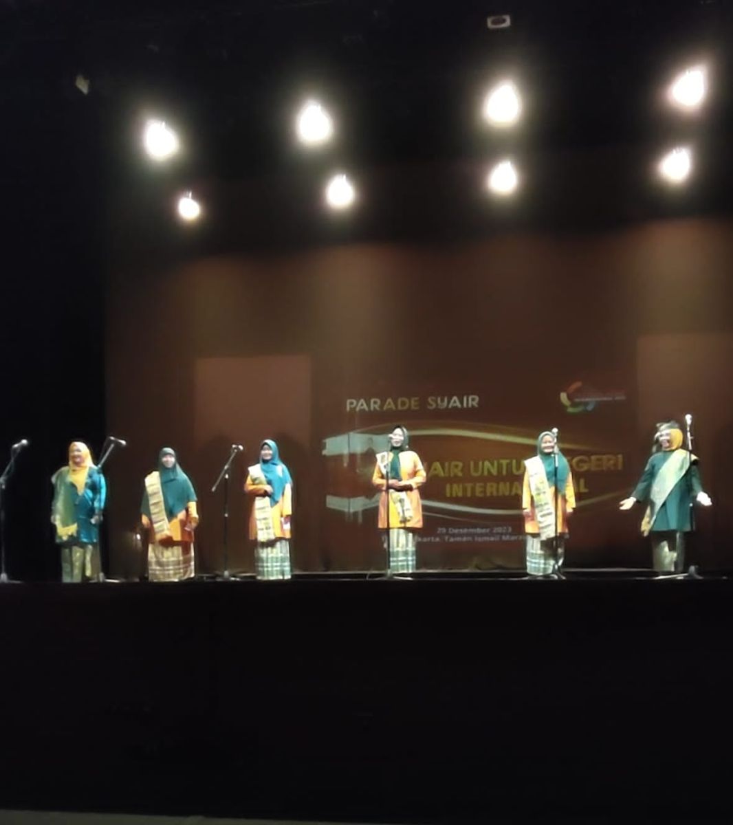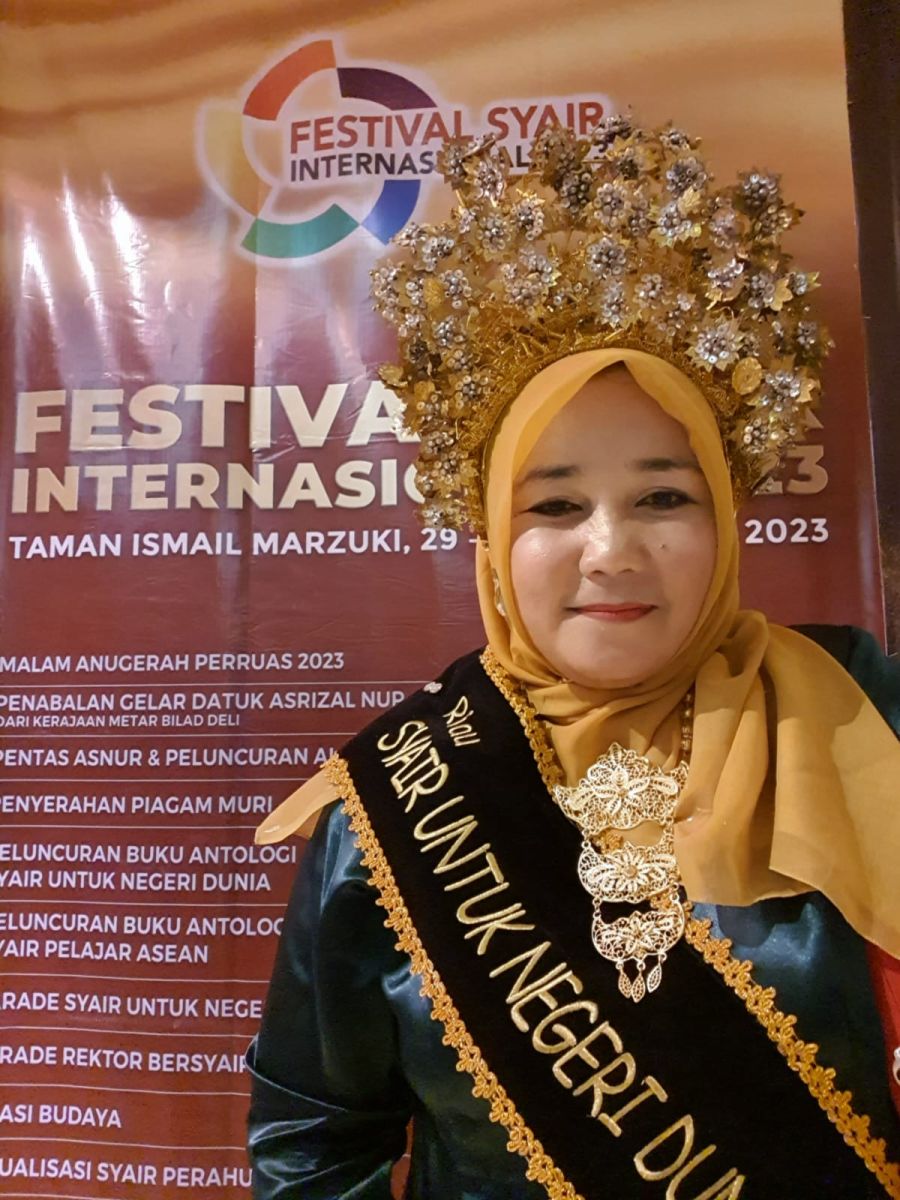 "Di rangkaian acara tersebut salah satunya Parade Syair untuk Negeri semua provinsi diwakili 6 orang dan negara lain 6 orang. Nah saya mengisi kegiatan parade syair untuk negeri ini mewakili Riau bersama rekan saya juga dari Riau," Jelas Bunda Arni.