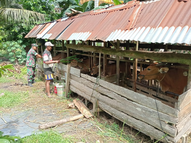DUMAI (MR) - Serma Sukardi, Babinsa Kelurahan Bumi Ayu yang bertugas di Koramil-01/Dumai - Kodim 0320/Dumai, melaksanakan kegiatan sosialisasi pencegahan Penyakit Mulut dan Kuku (PMK), (18/1).