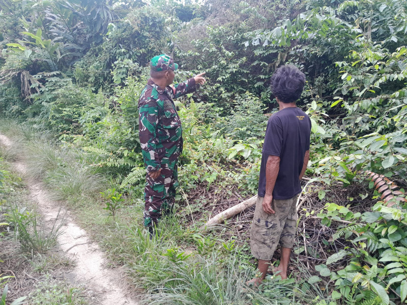 DUMAI (MR) - Babinsa Koramil 01/Dumai, Serma Fahrizal Purba, melaksanakan patroli cegah karhutla di wilayah yang rawan akan karhutla di RT 06 Kelurahan Bukit Timah Kecamatan Dumai Selatan, Minggu (21/01/2024).