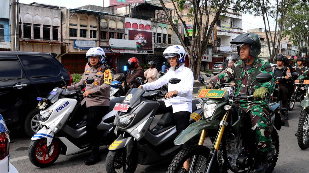 DUMAI (MR) - Dandim 0320/Dumai, Letkol Inf Antony Tri Wibowo bersama Walikota Dumai H.Paisal SKM Mars dan Kapolres Dumai Dhovan Oktavianton, S.H, S.I.K, M.Si melaksanakan patroli keliling Kota Dumai pada hari Rabu (14/2/2024).