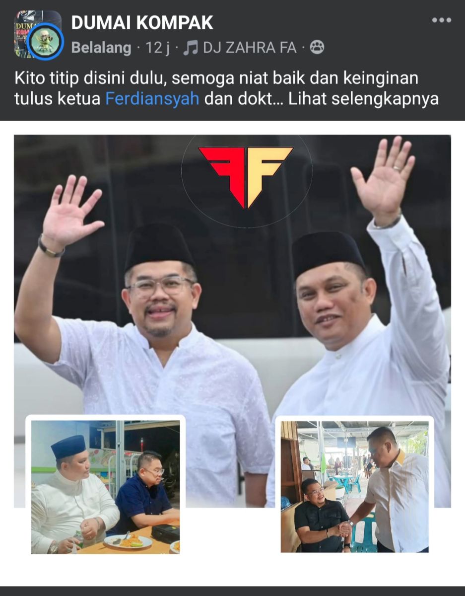 Bahkan di grub Dumai Kompak, Akun Belalang juga menampilkan foto Ferdiansyah dan dr. Feri dengan momen berbeda. Dilengkapi dengan caption: "Kito titip disini dulu, semoga niat baik dan keinginan tulus ketua Ferdiansyah dan dokter Ferianto Feri dapat terwujudkan, aamin"