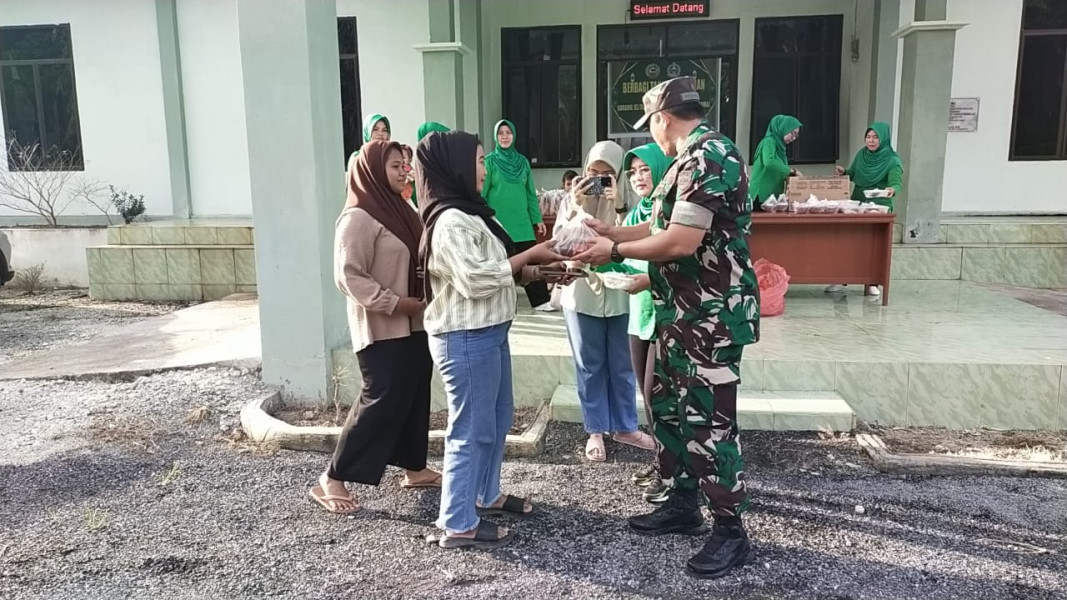 DUMAI (MR) - Sebagai bentuk kepedulian sosial dan semangat berbagi dalam menyambut bulan Ramadan, Danramil 03 Sungai Sembilan, Kapten Inf Hendra Darma, beserta anggota Koramil dan Ibu Persit KCK Cabang LXXV membagikan ratusan paket takjil kepada pengguna jalan yang melintas di depan Makoramil, (4/4).