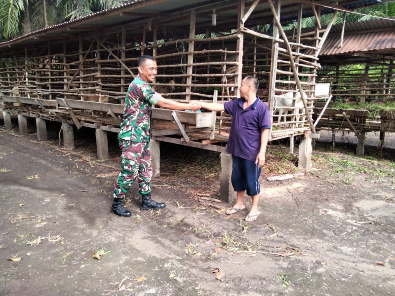 Babinsa Kelurahan Bagan Keladi Sosialisasikan Pencegahan Penyakit Mulut dan Kuku di Peternakan Warga