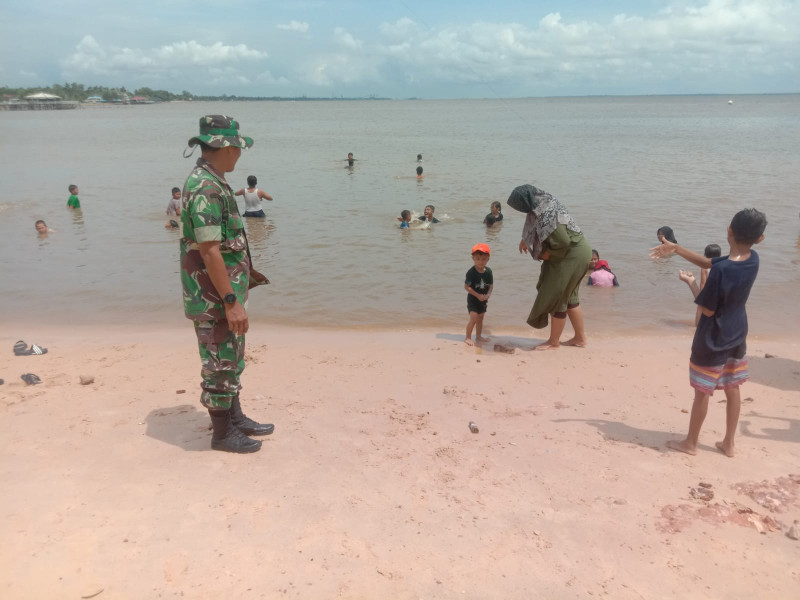 Selain itu, Babinsa juga melakukan patroli rutin untuk mencegah terjadinya tindak kriminalitas atau gangguan keamanan lainnya di sekitar pantai.