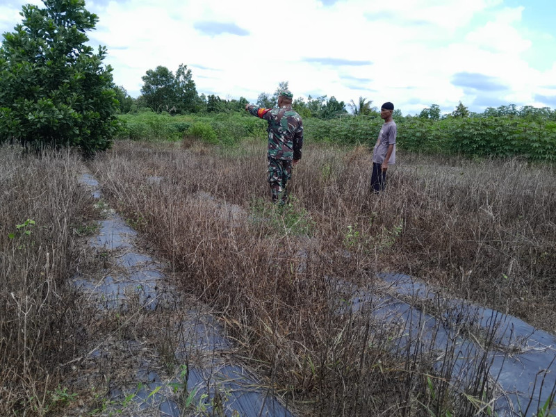DUMAI (MR) - Babinsa Koramil-01/Dumai, Serma F Purba, melakukan patroli cegah karhutla di wilayah Dumai Selatan, (11/5), Serma F Purba melakukan patroli di RT 06 Kelurahan Bukit Timah, yang merupakan wilayah yang rawan akan kebakaran hutan dan lahan (karhutla).