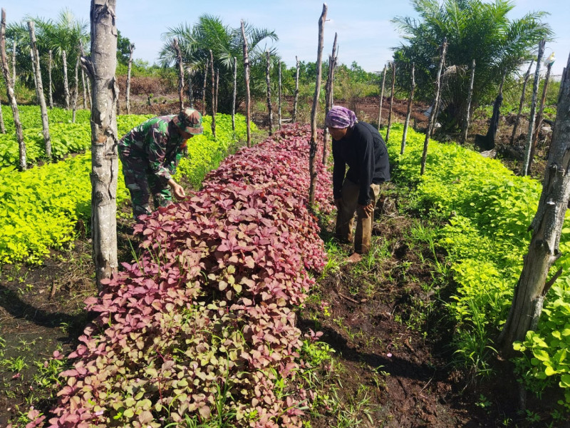 Babinsa Kelurahan Palas Dampingi Petani dalam Karya Nyata Tanaman Bayam