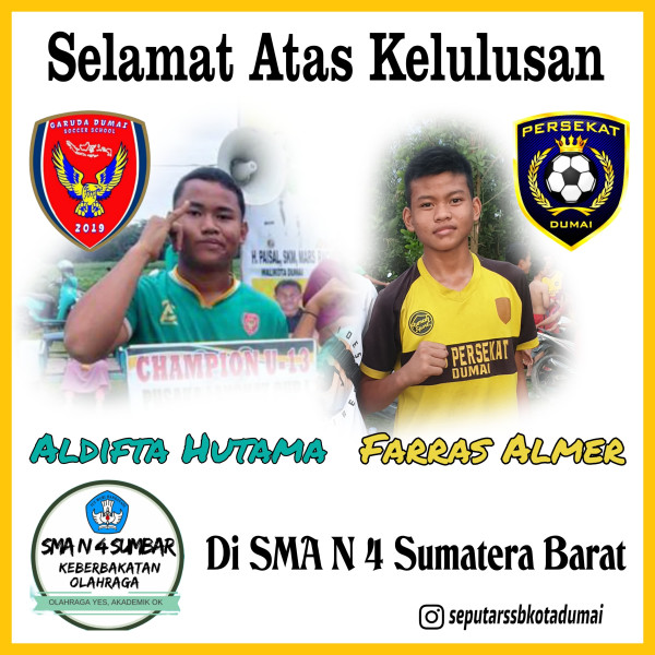 DUMAI (MR) - Siswa SSB Persekat Dumai dan Garuda Soccer School berhasil lulus SMA Negeri 4 Padang (SKO Sumbar) Senin 20 Mei 2024.