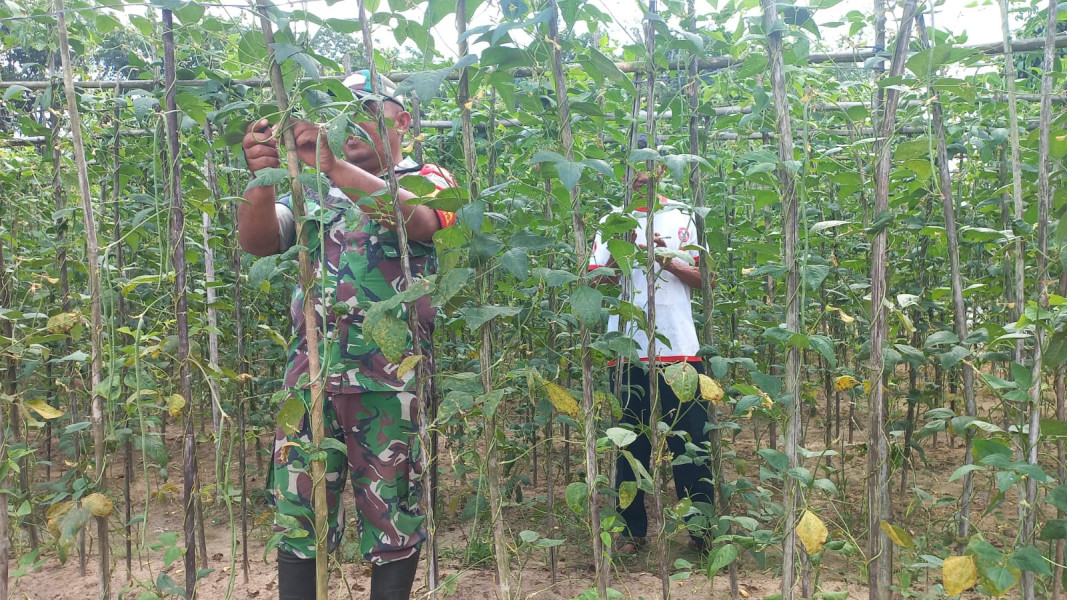 Menurut Siman, pemilik ladang, kehadiran Babinsa sangat membantu dalam proses penanaman kacang panjang.