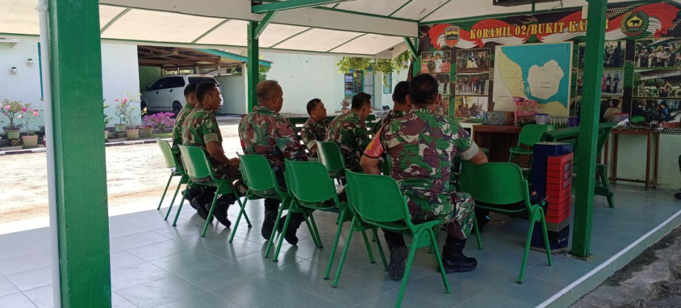 Kegiatan yang bertempat di Koramil 02/BK ini dihadiri oleh Danramil 02/BK Kapten Inf Syuar Hendri, Peltu Joko (Bati Tuud Koramil 02/BK), para Bati Koramil 02/BK, dan para Babinsa Koramil 02/BK.