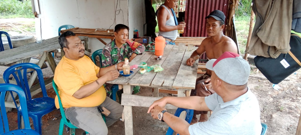 DUMAI (MR) - Babinsa Koramil 03 Sungai Sembilan, Serda Bambang Irwanto, melaksanakan kegiatan Komunikasi Sosial (Komsos) dengan tokoh pemuda dan masyarakat di wilayah Kecamatan Sungai Sembilan, (12/6).
