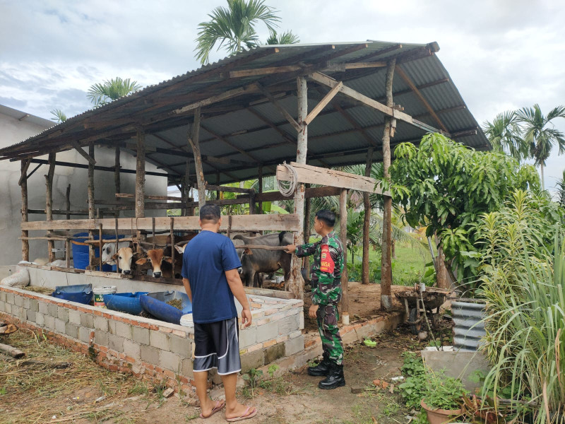 Selain itu, Babinsa juga memberikan tips mengenai kebersihan kandang dan pakan ternak untuk mendukung kesehatan hewan.