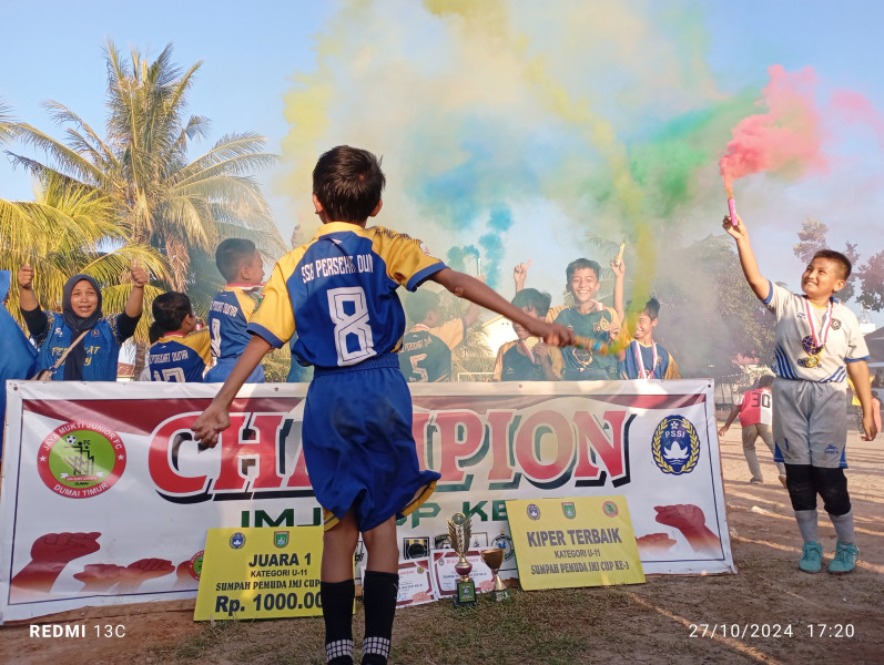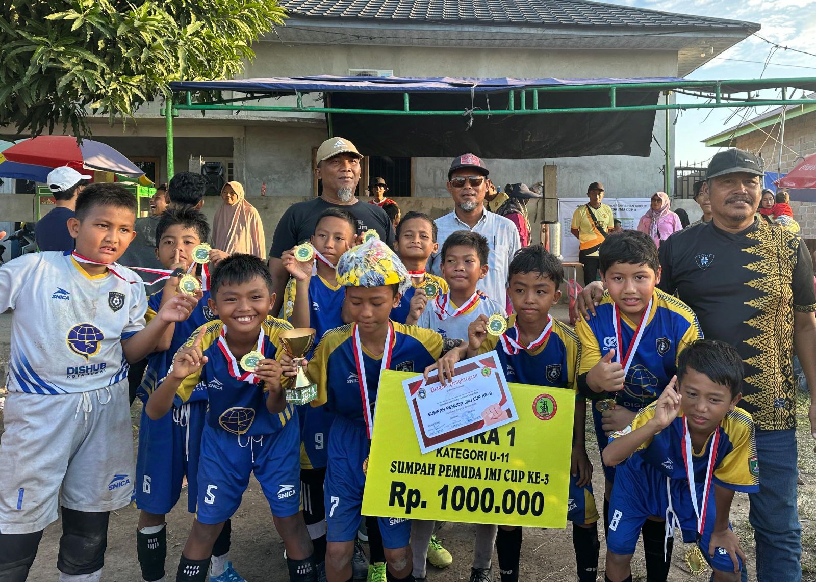 DUMAI (MR) - Persekat menjuarai Turnamen JMJ Cup U-11 Sempena Hari Sumpah Pemuda 2024, usai menang lewat drama adu pinalti atas Rooster SS, Minggu (27/10/2024) di lapangan belakang Masjid Darussalam Jl Kesuma Jayamukti.