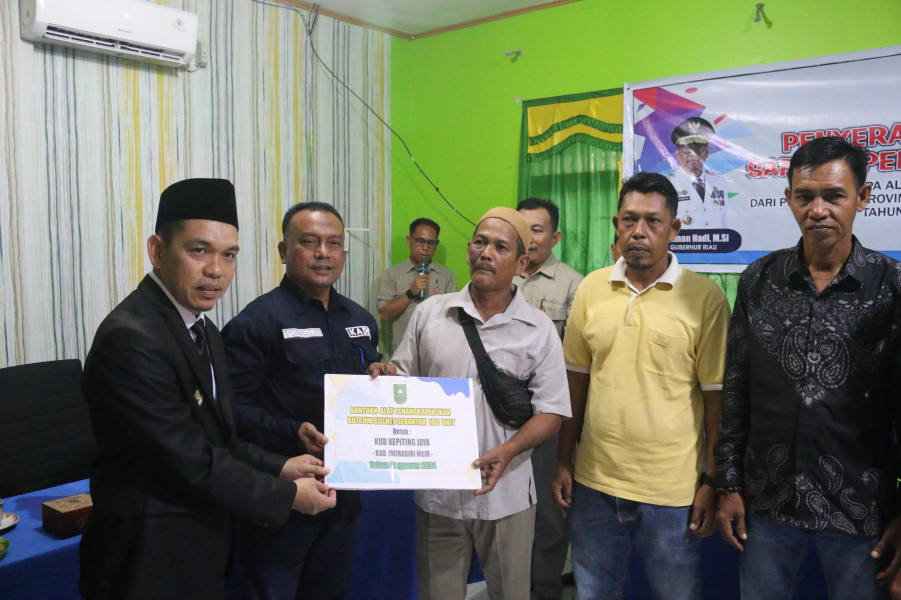 TEMBILAHAN (MR) - Menunjang kinerja nelayan di Kabupaten Indragiri Hilir (Inhil), Dinas Kelautan dan Perikanan (DKP) Provinsi Riau salurkan bantuan sarana penangkapan ikan, yang diserahkan langsung kepada kelompok nelayan oleh Penjabat (Pj) Bupati Inhil Erisman Yahya bersama Kepala DKP Riau Yurnalis.