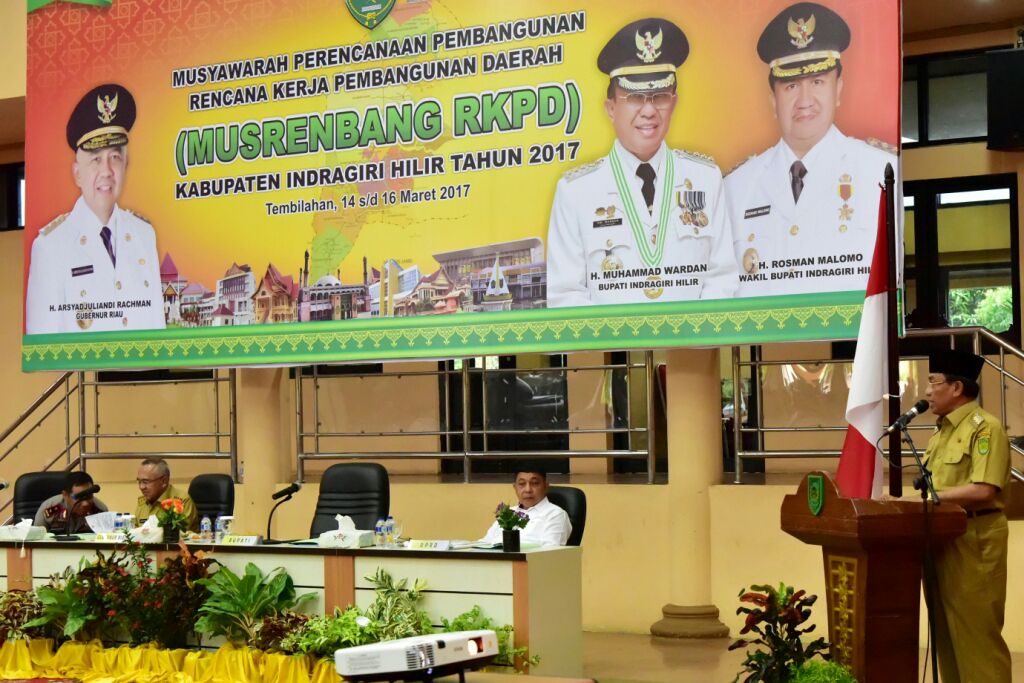 "Musrenbang RKPD Kabupaten Inhil tahun 2017 ini merupakan sebuah sarana penyusunan dan perencanaan yang memuat hasil Musrenbang dari setiap tingkatan daerah, mulai tingkat Desa hingga Kecamatan serta yang berasal dari usulan Organisasi Perangkat Daerah dan Forum Komunikasi Publik," ungkap Bupati Wardan.