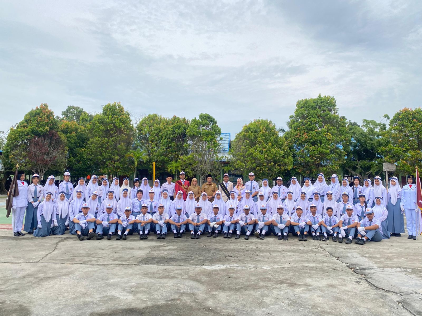 Setelah upacara pelantikan selesai, dilanjutkan dengan sesi foto bersama antara pengurus OSIS dan MPK 2023-2024 serta 2024-2025 yang baru saja dilantik.