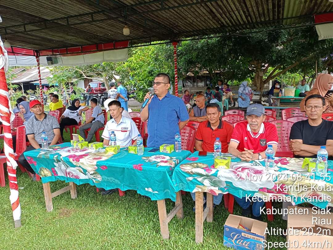 Coach Yono menjelaskan maksud dan tujuan turnamen ini guna mengembangkan dan mengenalkan pembinaan usia dini sepakbola di Kecamatan Kandis, Kabupaten Siak.