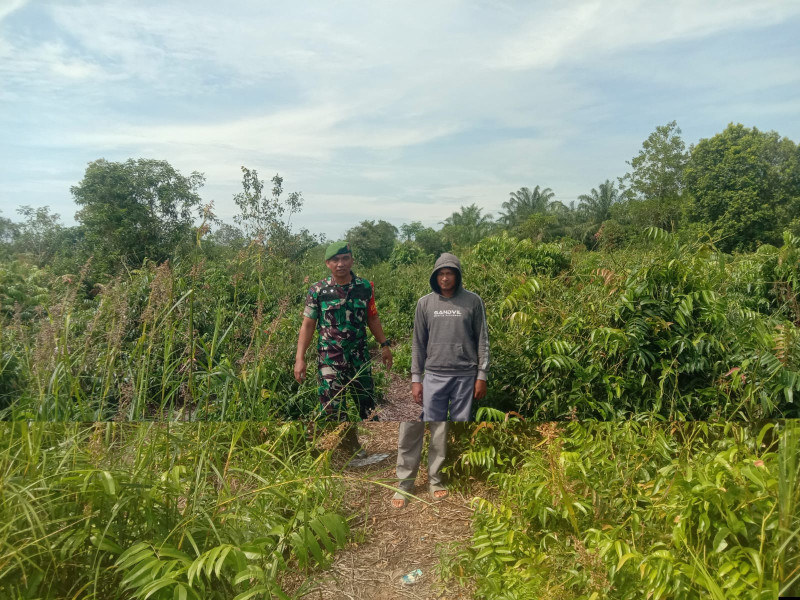 Dalam sosialisasi di Jalan Harapan, RT 07, Serda Priyo juga menyampaikan langsung sanksi hukum kepada warga bernama Andi yang sedang membuka lahan.