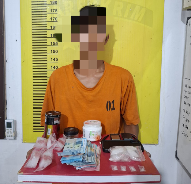 Adapun BB yang berhasil diamankan dalam operasi ini meliputi, sembilan (9) bungkus plastik berisi sabu, empat (4) bungkus plastik klip bening berisi sabu, lima (5) pack plastik klip bening, dua (2) timbangan digital, satu (1) unit HP merek IPhone XR hitam, satu (1) tas samping merek Eiger, uang tunai Rp 2.200.000, satu (1) kaleng bekas dan dua (2) toples bekas merek Shinzui dan Gatsby.