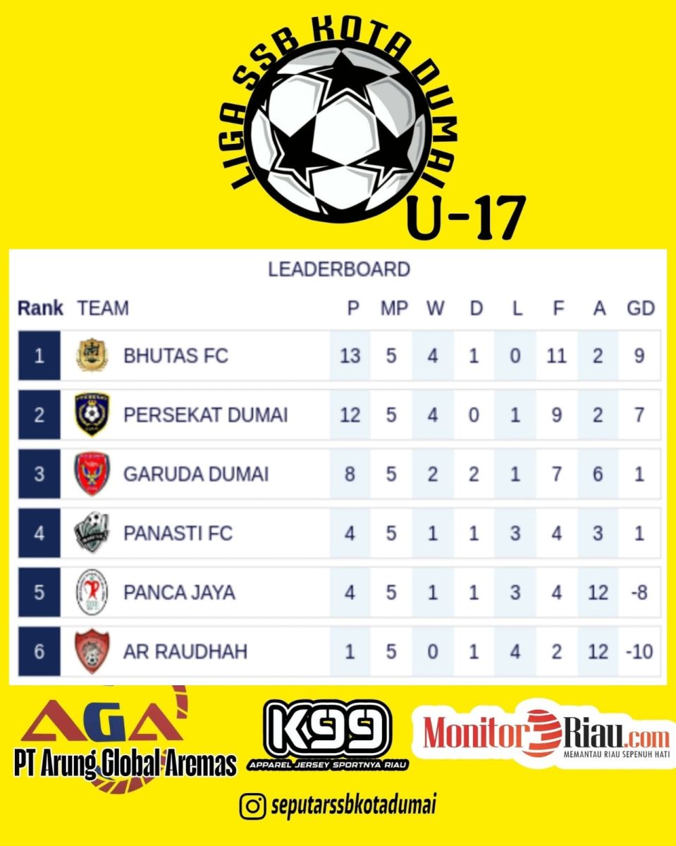 Di kategori U-17, SSB Bhutas menjadi pemuncak klasemen sementara dengan poin 13 atas 4 kemenangan dan 1 seri. Diposisi dua ada SSB Persekat Dumai yang dengan selisih 1 poin.